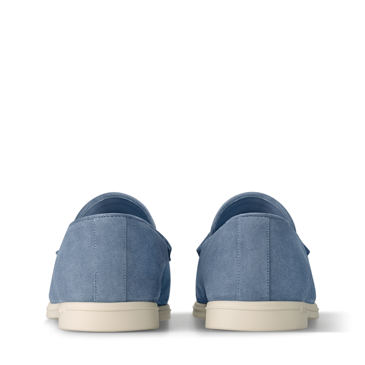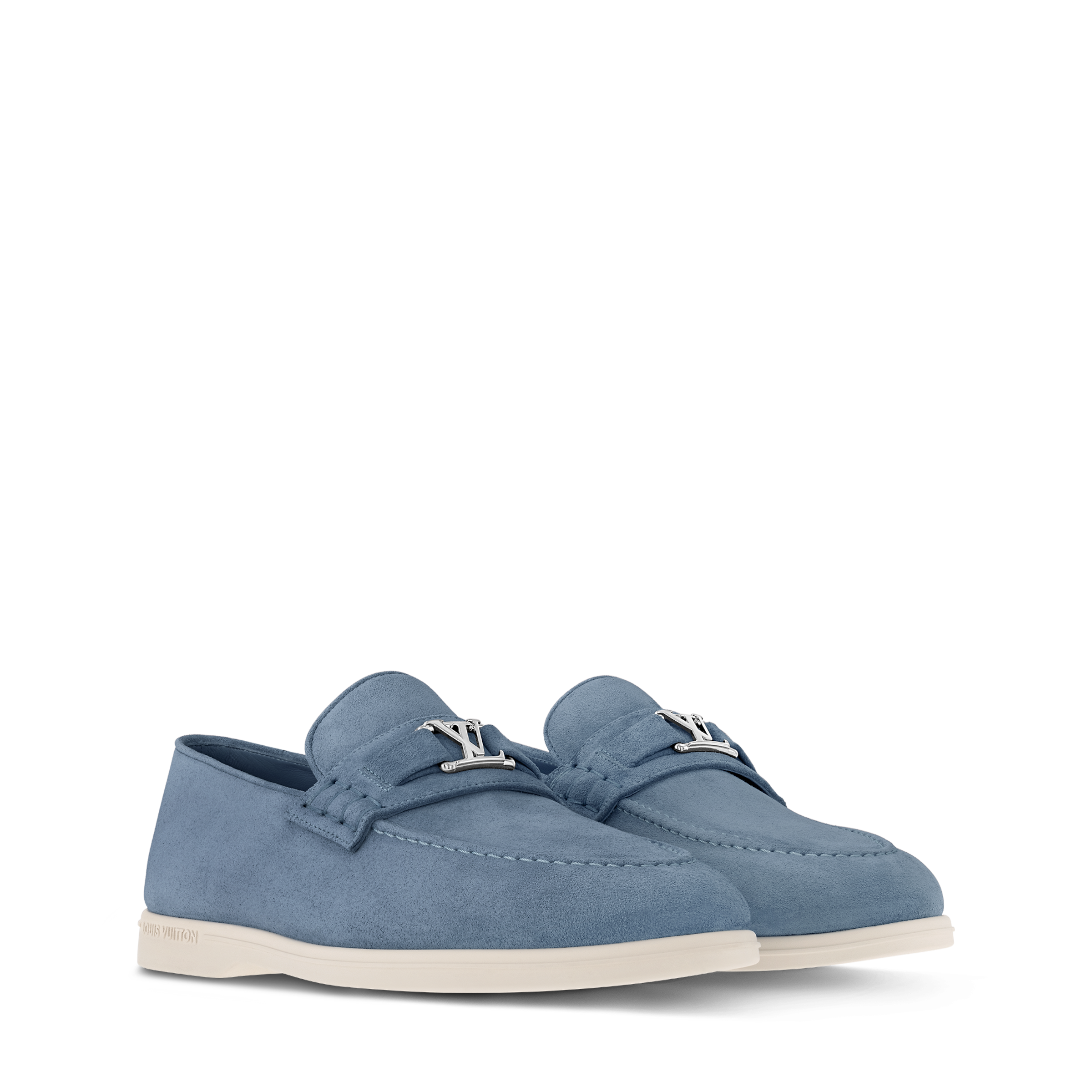 - La maison réédite cette saison son mocassin Estate en daim de veau souple. Ce modèle facile à porter est orné d’une bride argentée monogrammée LV. La semelle extérieure légère en caoutchouc présente une couleur contrastante et est embossée de la signature Louis Vuitton.Bleu